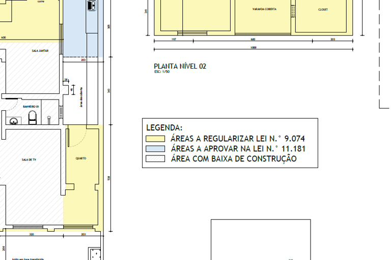 Medição e representação gráfica do imóvel existente para uso em projetos e regularizações.